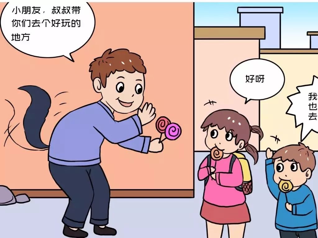 家长带着糖果、点心,走到教室先是讨各位小朋友欢心,接着再以带孩子出门买玩具,买零食,玩游戏为由,来哄骗孩子。