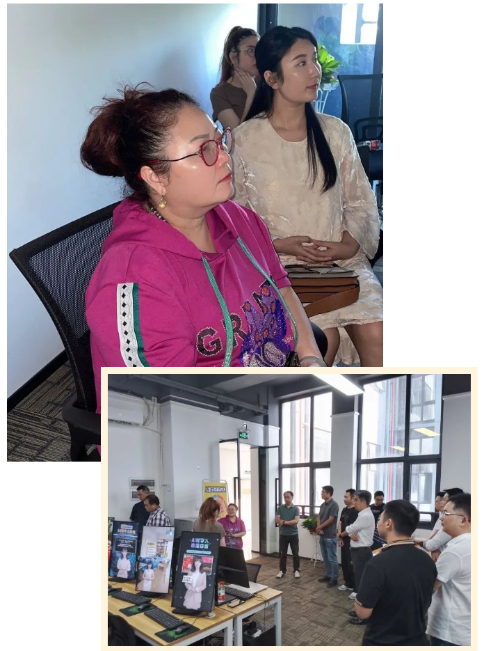 嘿桃公益董事长吴雨淋,给大家介绍嘿桃公益创办的历程,以及给本土青年及港澳青年提供绿色创业服务,生态性人才培养等公益活动。并现场参观讲解通过AI数字人直播带货来带动青年创业。
